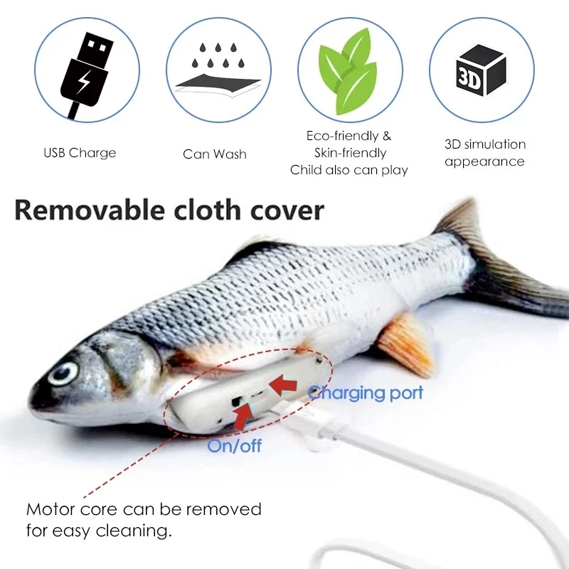 Brinquedo para Animais de Estimação Peixe Balançando recarregável USB para Gato e Pets